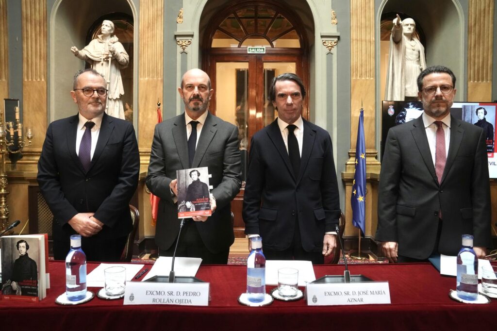 . La Fundación FAES ha presentado en el Senado el libro Alexis de Tocqueville. Un liberal único, del profesor Eduardo Nolla, una obra que reivindica la vigencia del pensador francés como uno de los grandes defensores de la libertad en las sociedades democráticas. En el acto han participado el presidente del Senado, Pedro Rollán, y el expresidente del Gobierno y presidente de FAES, José María Aznar, Javier Fernández Lasquetty y el propio autor.