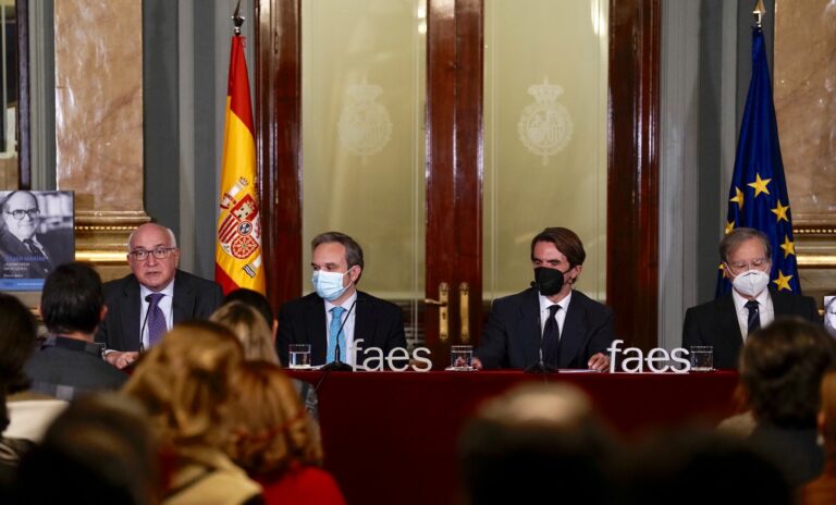José María Aznar, Javier Zarzalejos, Álvaro Marías y Ernesto Baltar participaron en el acto celebrado en el Senado.